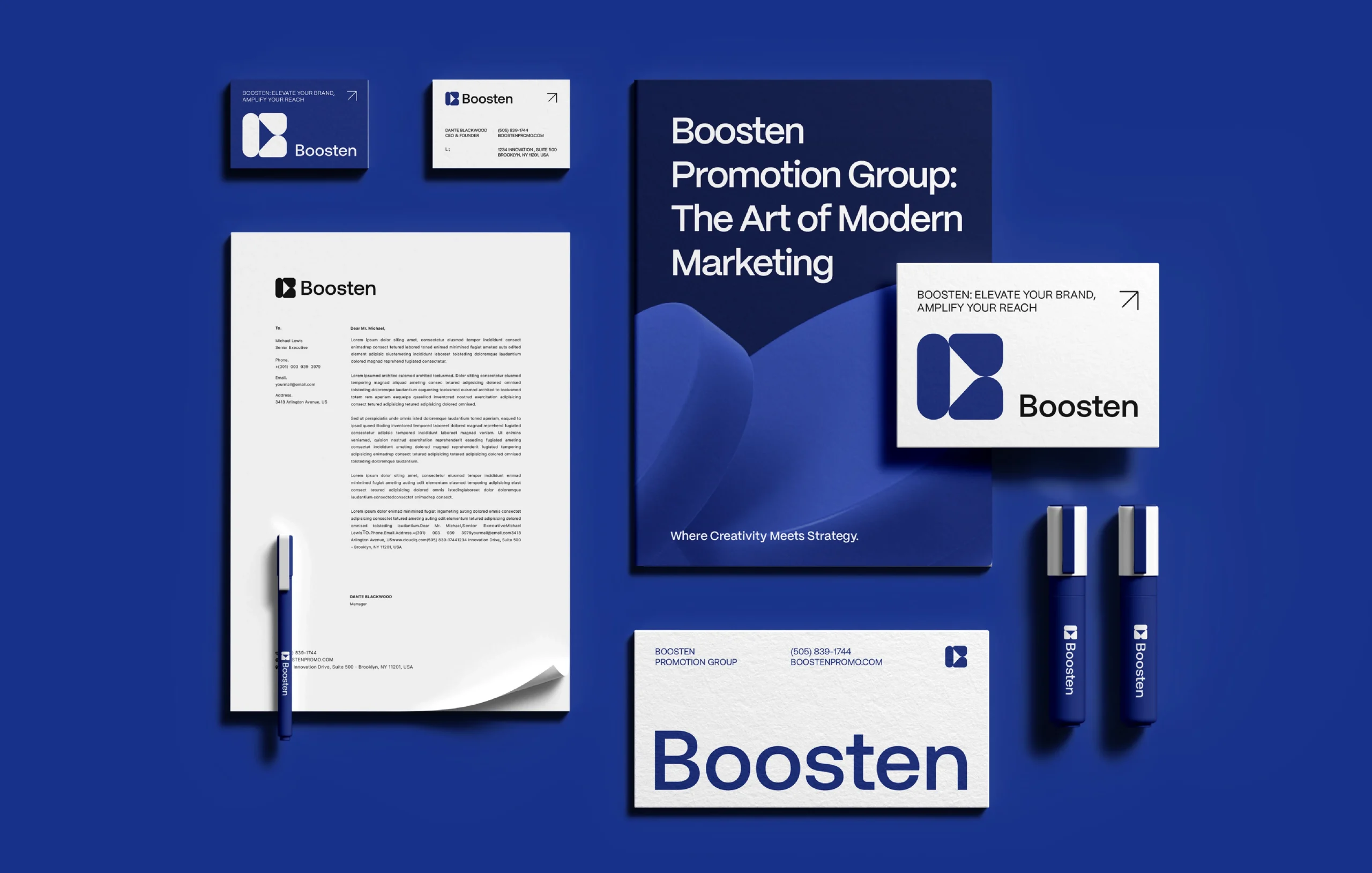 The new branding elevated Boosten’s professional image, making it instantly recognizable and adaptable for global use. The refreshed identity positioned Boosten Promotion Group as a refined, intelligent, and forward-driven marketing agency ready to lead in its industry.